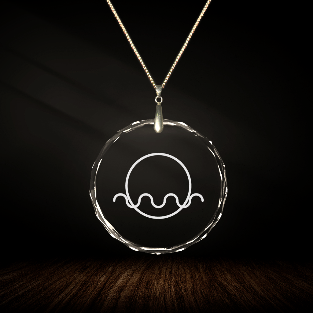 Wunderschöner und hochwertiger runder Glasanhänger mit facettierten Kanten und innen gelasertem Kristall AVATARA. Der AVATARA-Anhänger wurde energetisch gereinigt und anschließend gemeinsam mit der Geistigen Welt mit den Energien des Kristalls energetisiert.