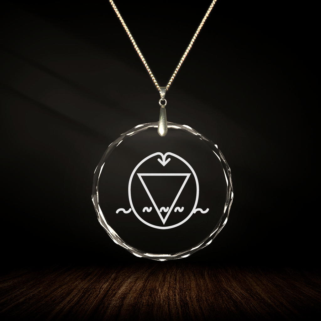 Wunderschöner und hochwertiger runder Glasanhänger mit facettierten Kanten und innen gelasertem Kristall AMBA'REES. Der AMBA'REES-Anhänger wurde energetisch gereinigt und anschließend gemeinsam mit der Geistigen Welt mit den Energien des Kristalls energetisiert.