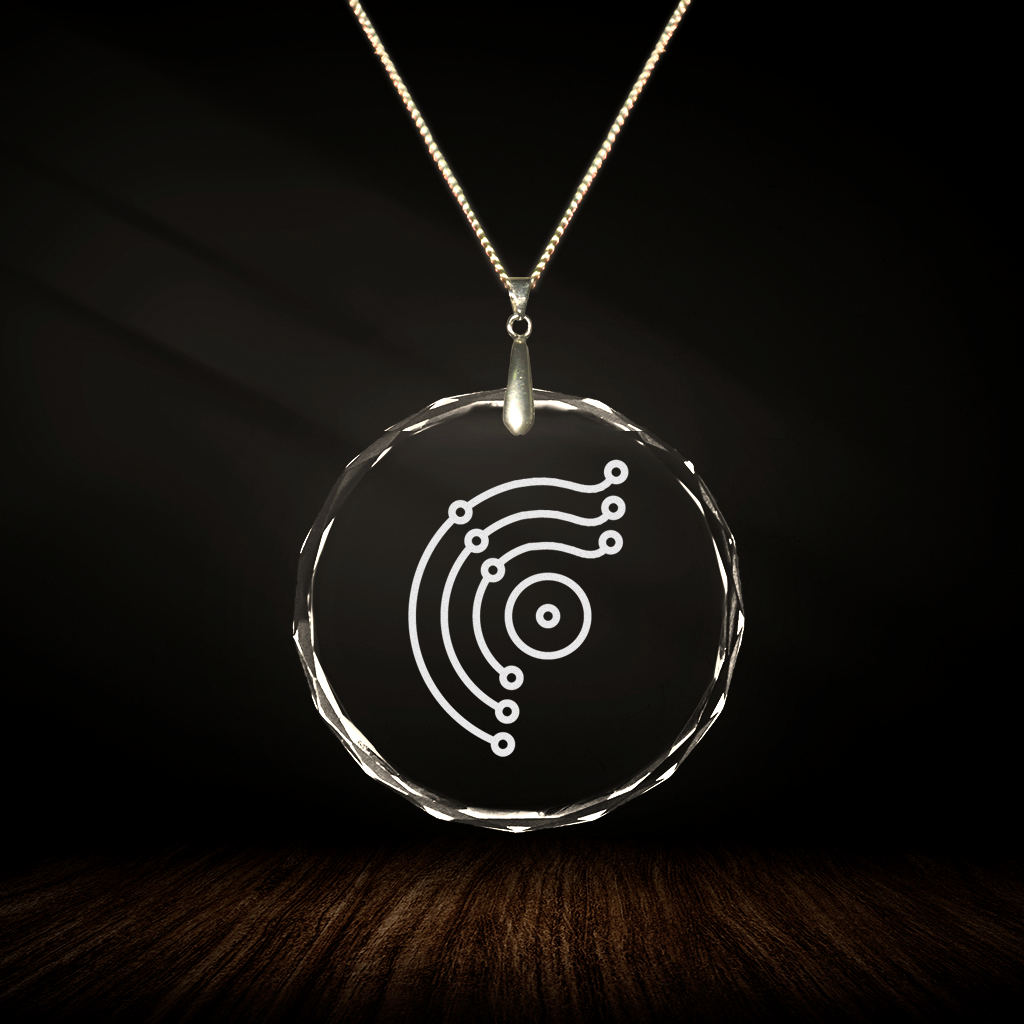 Wunderschöner und hochwertiger runder Glasanhänger mit facettierten Kanten und innen gelasertem Kristall RUNA. Der RUNA-Anhänger wurde energetisch gereinigt und anschließend gemeinsam mit der Geistigen Welt mit den Energien des Kristalls energetisiert.