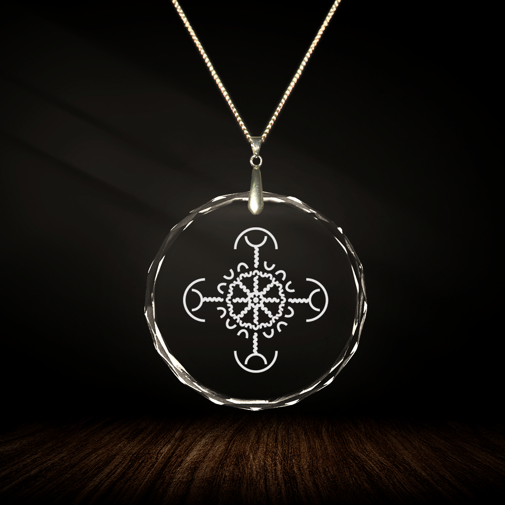 Lovely and high-quality round glass pendant with faceted edges and crystal EL'ACHAI lasered inside. The EL'ACHAI pendant was energetically cleaned and then energized together with the spiritual world with the energies of the crystal.