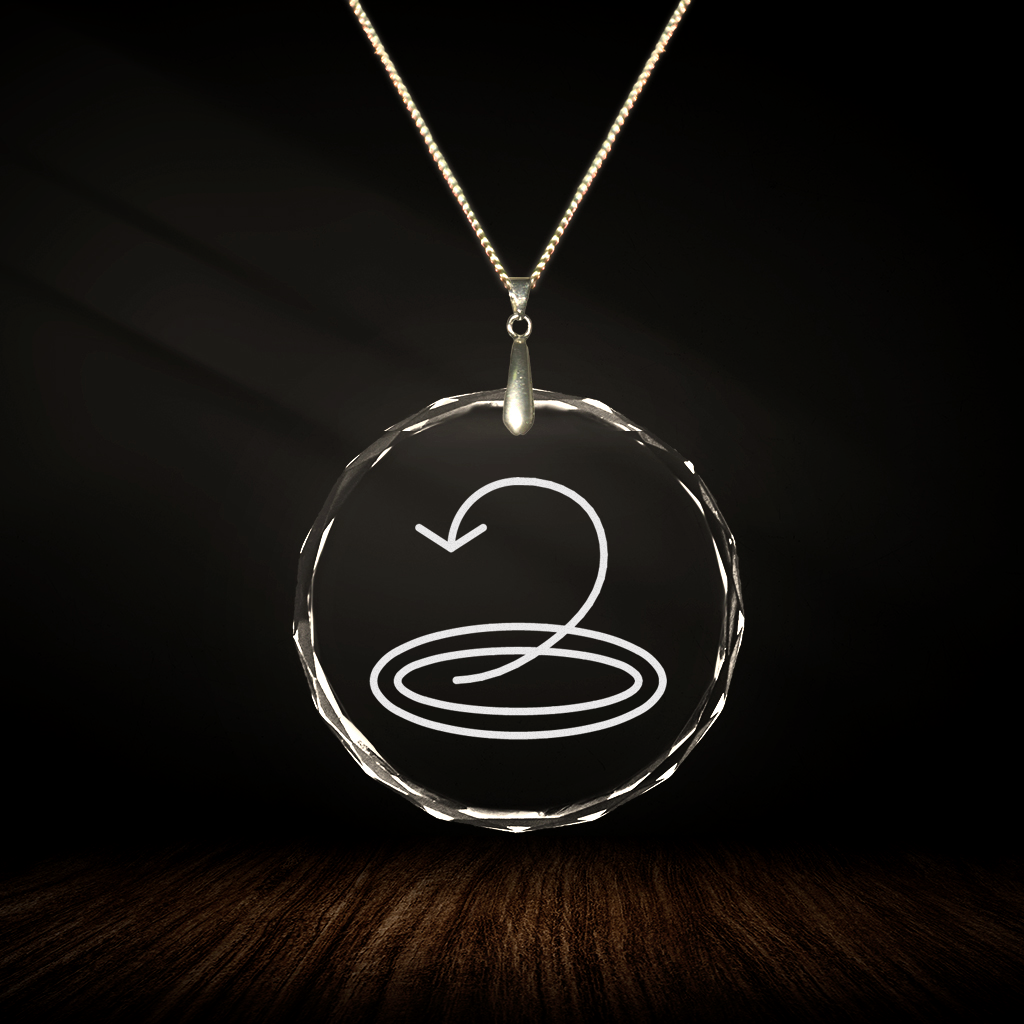 Lovely and high-quality round glass pendant with faceted edges and crystal ARTEE lasered inside. The ARTEE pendant was energetically cleaned and then energized together with the spiritual world with the energies of the crystal.