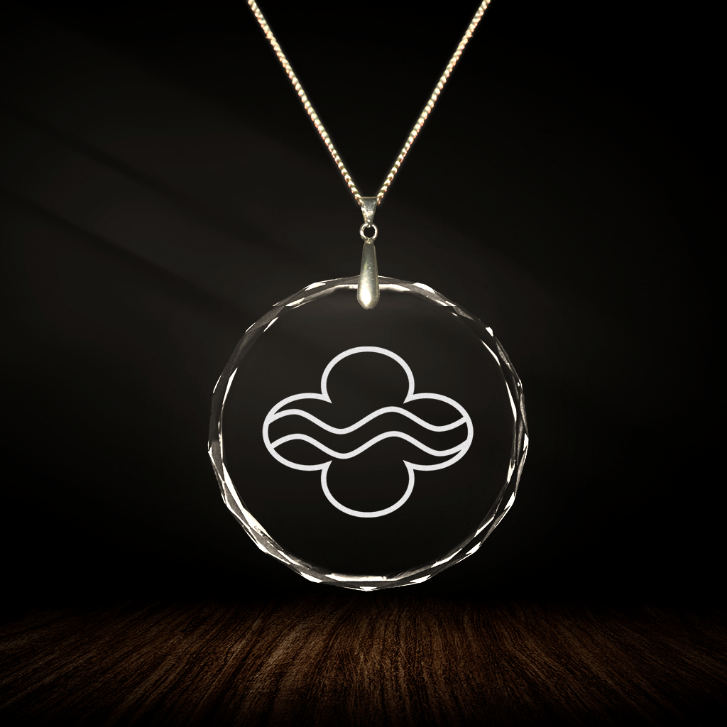 Lovely and high-quality round glass pendant with faceted edges and crystal BLUETANA lasered inside. The BLUETANA pendant was energetically cleaned and then energized together with the spiritual world with the energies of the crystal.