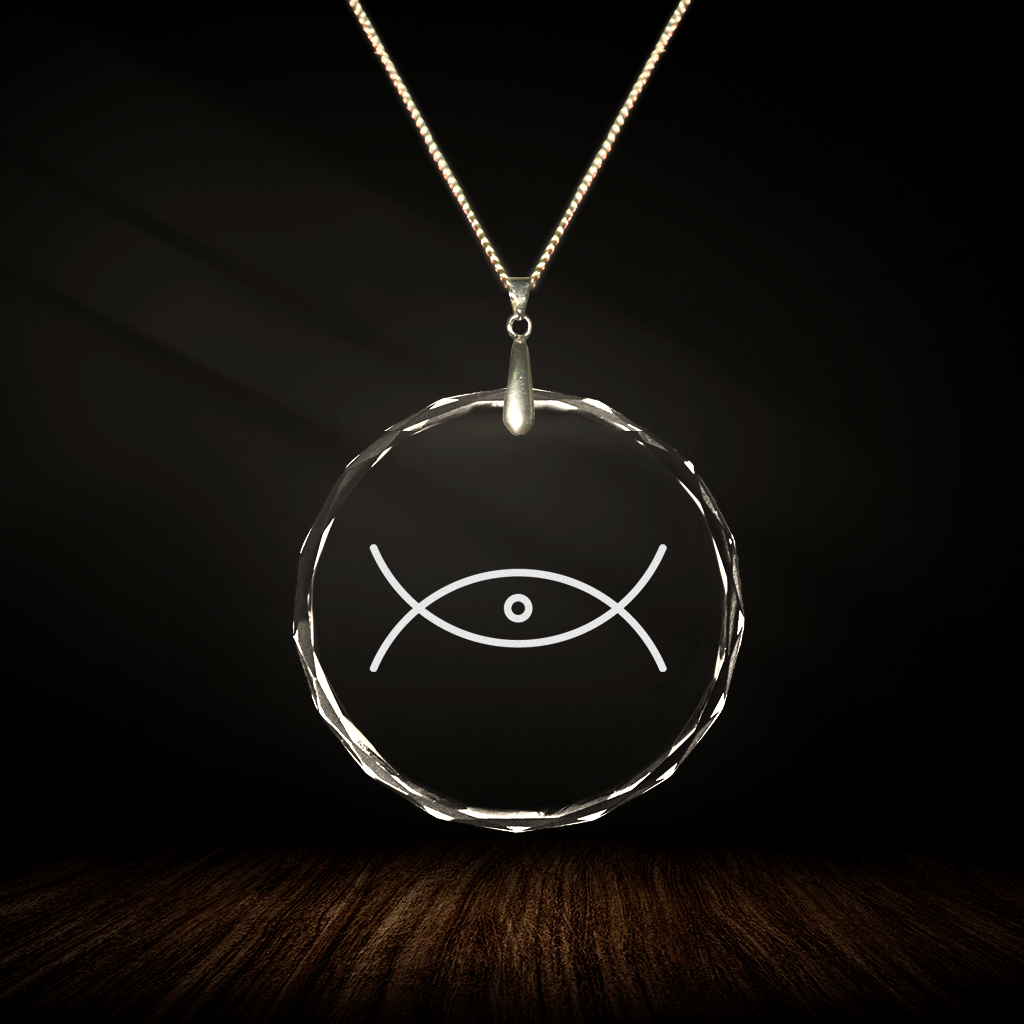 Lovely and high-quality round glass pendant with faceted edges and crystal ELTA lasered inside. The ELTA pendant was energetically cleaned and then energized together with the spiritual world with the energies of the crystal.