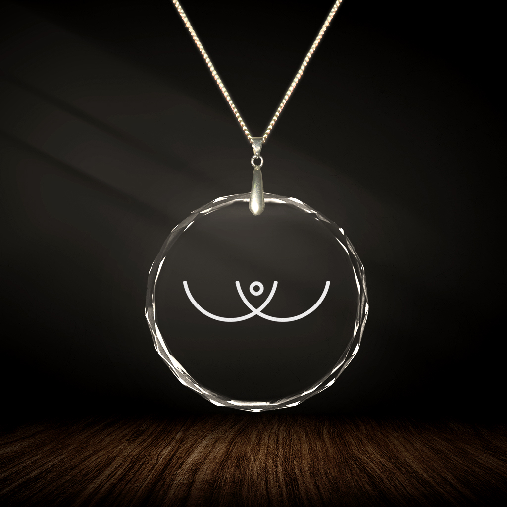 Lovely and high-quality round glass pendant with faceted edges and crystal SIAS lasered inside. The SIAS pendant was energetically cleaned and then energized together with the spiritual world with the energies of the crystal.
