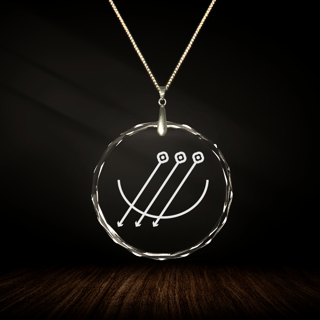 Lovely and high-quality round glass pendant with faceted edges and crystal AKRASYS lasered inside. The AKRASYS pendant was energetically cleaned and then energized together with the spiritual world with the energies of the crystal.