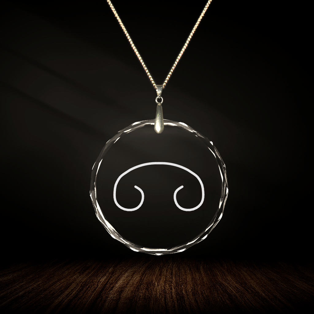 Lovely and high-quality round glass pendant with faceted edges and crystal ONAR lasered inside. The ONAR pendant was energetically cleaned and then energized together with the spiritual world with the energies of the crystal.