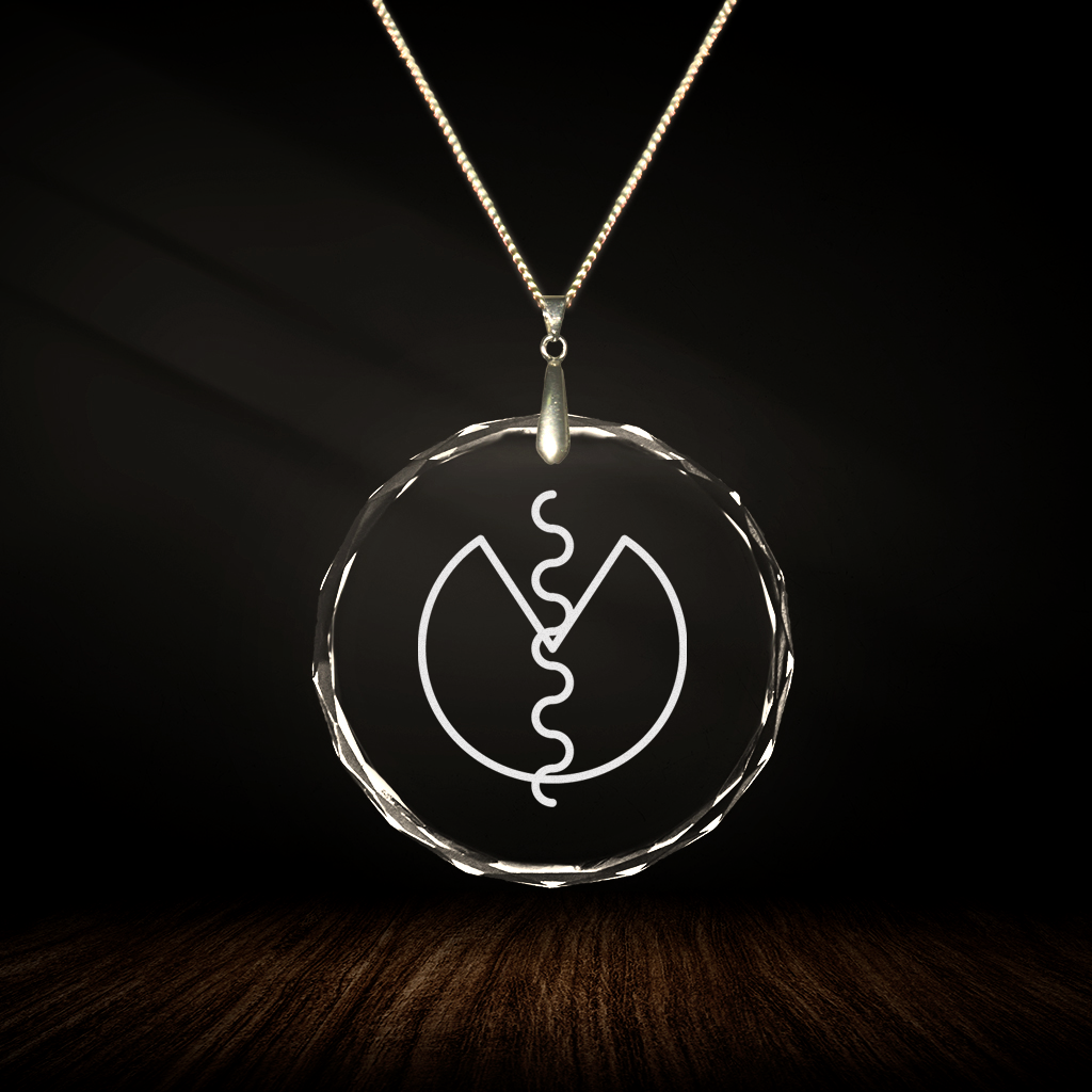 Lovely and high-quality round glass pendant with faceted edges and crystal MOHA'RA lasered inside. The MOHA'RA pendant was energetically cleaned and then energized together with the spiritual world with the energies of the crystal.